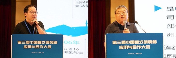 在主題演講環(huán)節(jié),中鐵鐵龍?zhí)胤N箱物流事業(yè)部箱資產管理部負責人欒黎強分享了鐵路罐箱運輸發(fā)展現(xiàn)狀及對未來戰(zhàn)略的思考。中國船級社集裝箱檢驗中心上海分中心業(yè)務總監(jiān)廖英勇介紹了中國船級社助力罐箱應用標準化和智能化所開展的工作。中集安瑞科控股有限公司科技創(chuàng)新中心總經理李東主題演講中分享了氫能裝備的發(fā)展現(xiàn)狀及應用案例。中集安瑞環(huán)科技股份有限公司研究院院長孟慶國介紹了新興產業(yè)引領罐箱定制化發(fā)展的情況。